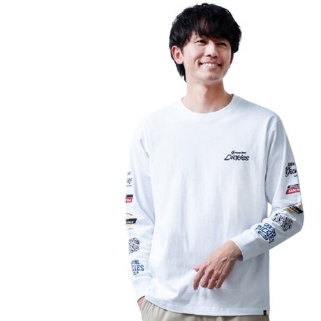 商品情報: ラグランtシャツ カットソー お洒落 クルーネック ロンt ホワイト おしゃれ ネイビー カジュアル ネイビー×ホワイト 袖プリント 全4色 ブラック 秋 トップス Uネック アメカジ コットン 綿100 メンズファッション プレゼント GENUINE 大きいサイズ 紺 長袖tシャツ ブラック×ホワイト ロゴ 白 ギフト 刺繍 ストリート 黒 綿 Dickies M L LL XL ジェネレス GENELESS