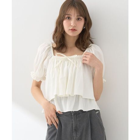 スクエアフロントリボンブラウス