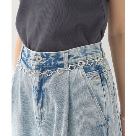 フラワーモチーフチェーンの輝きがスタイリッシュなベルト。お好みの位置で留め、フィット感を調整できるのも嬉しいポイントです。シンプルなワンカラーでどんなスタイリングにもバランスマッチ。パンツに巻くのはもちろん、ワンピースの上からアクセントとして付けるのもおすすめです。※モデル着用画像は、光の当たり具合で色味が違って見える場合がございます。※お使いのモニター環境によって商品の色味が違って見える場合がございます。