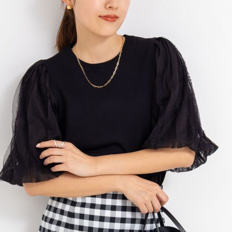 ・チュール袖で程よい甘さをプラスしたニットプルオーバー