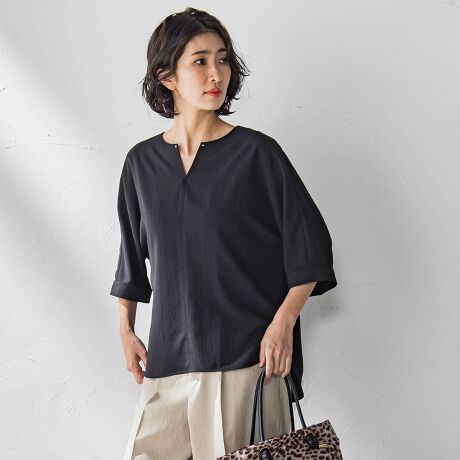 ドルマンスリーブのゆったりとしたシルエット感で肌離れがよく、