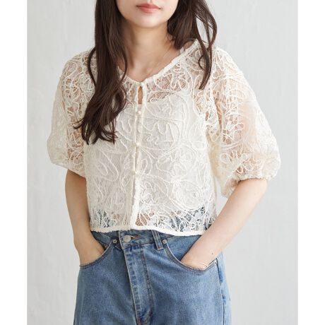 ふんわりとした袖がほど良く華やかで、繊細な柄が際立つように仕上げられたレースは、透け感がありながらもしっかりと存在感を放ちます。