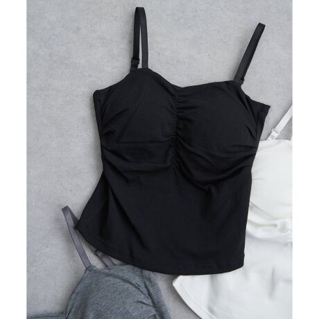 胸元にギャザーを寄せた立体的なフォルムが特徴のブラトップ。