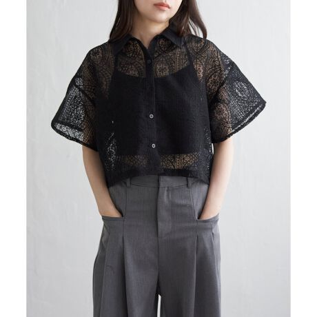 ショート丈のバランス感が新鮮な、ハーフスリーブのレースシャツ。