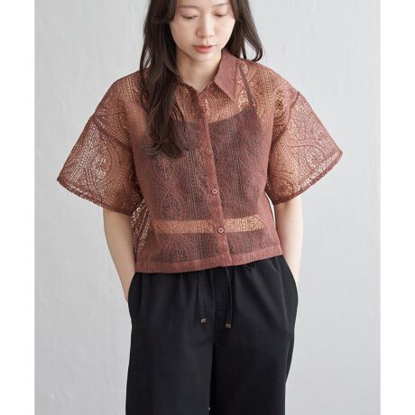 ショート丈のバランス感が新鮮な、ハーフスリーブのレースシャツ。