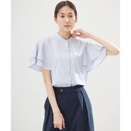 ■デザイン・大人に馴染む上品なケープの様な袖の2段フリル。・脇の下をカバーしてくれるマチ付きで安心感◎。・暑い時期にも涼しく快適ながらエレガントな大人におすすめデザイン。