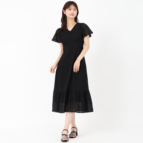 コットンレース生地がやわらかな女性らしさを演出するワンピース。スリーブや裾はふんわりとした切り替えを施し、立体感のあるシルエットを描きます。Vネックの首元がきれいめな雰囲気をプラス。1枚でお出かけコーデが完成するアイテムです。■fabric透け感[やや有り]裏地[無し]伸縮性[やや有り]生地の厚さ[普通]