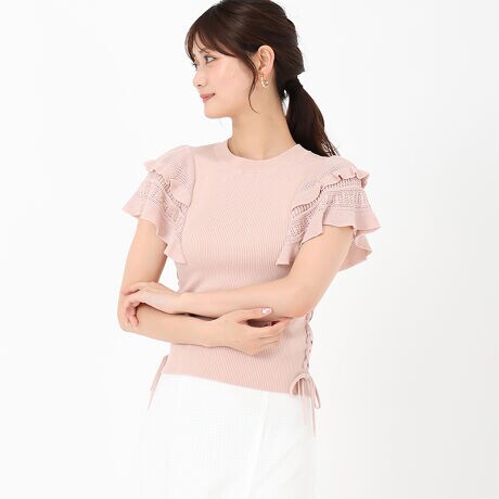 クロシェ編みのフレアスリーブが可愛らしさを演出するニット。サイドにはレースアップを施し、ガーリーなムードを高めています。伸縮性に優れたリブ素材で着心地の良さを実現。スカートと合わせたコーディネートがおすすめです。■fabric透け感[無し]裏地[無し]伸縮性[有り]生地の厚さ[普通]