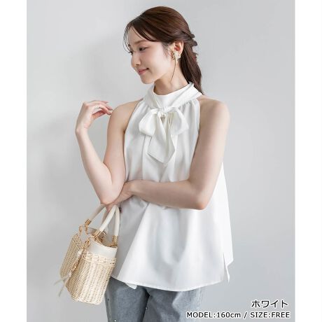 シンプルで洗練されたデザインが上品さを高めてくれるホルターネックブラウス。