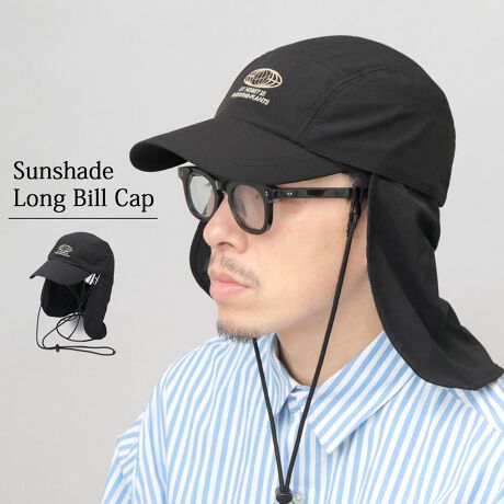 7パネルデザインのやや浅めのクラウンに、後部に配置されたサンシールドがアウトドアシーンを彷彿とさせる、ロングビルキャップ。首元をしっかり覆えるサンシールド、フィット感を調節できるあご紐、軽量ながら強度の高いリップストップ生地など、日差しの強い日にぴったりのアイテムに。リップストップ生地は、縦横にバランスよくストレッチが効く、着用時に突っ張りが少ない生地を使用。長めのカーブバイザーがしっかり日差しをカットしてくれるので安心◎アウトドア・キャンプはもちろん、フェスに!遊びに!春夏のアクティブシーンにオススメ◎