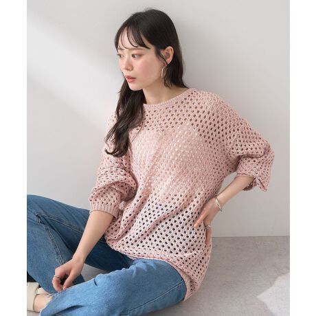 春夏にぴったりなメッシュ素材で仕立てたプルオーバー。程よく肌が透けて、色柄物インナーとのコントラストもお楽しみいただけます。身体のラインを拾いにくいサイズ感で華奢見えするのも嬉しいポイント。合わせ方次第でロングシーズン活躍するおすすめのアイテムです。透け感[ややあり]