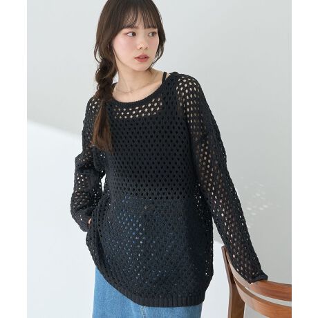 春夏にぴったりなメッシュ素材で仕立てたプルオーバー。程よく肌が透けて、色柄物インナーとのコントラストもお楽しみいただけます。身体のラインを拾いにくいサイズ感で華奢見えするのも嬉しいポイント。合わせ方次第でロングシーズン活躍するおすすめのアイテムです。透け感[ややあり]