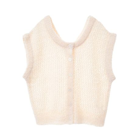 表情豊かなファンシーヤーン生地で仕立てたベスト。前後どちらを前にしても着用でき、着こなしの幅が広がります。ボタンを開けて羽織としても活躍する汎用性の高さも魅力的。いつものスタイリングにオンするだけで印象が変わるおすすめのプラスワンアイテムです。透け感[ややあり]