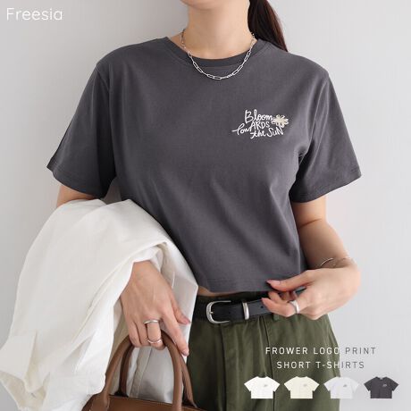 手書き ロゴ フラワー プリント ミニ Tシャツ Freesia フリージア