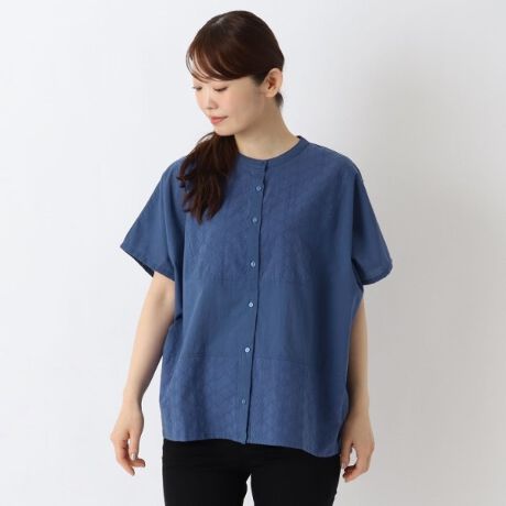 刺繍切替 前あきブラウス
