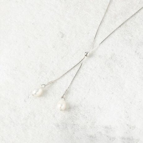 上品な淡水パールが先端に施されたスライド仕様のネックレスは、モダンな印象を与えつつ、女性らしさを引き立てます。