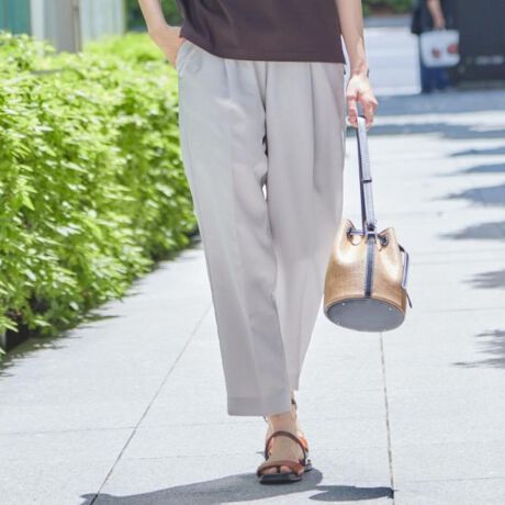 すっきり綺麗なシルエットのテーパードパンツ。