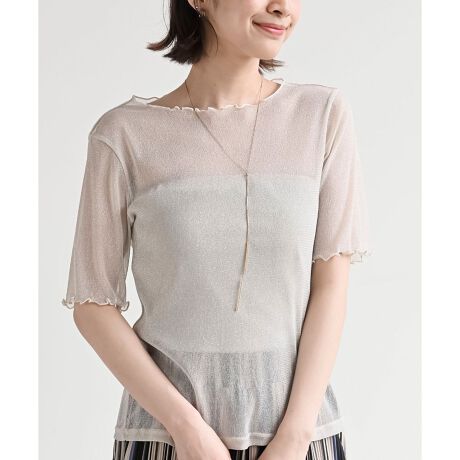 上品なきらめきがコーデを彩るラメシアーカットソー。