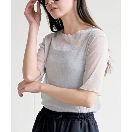 上品なきらめきがコーデを彩るラメシアーカットソー。