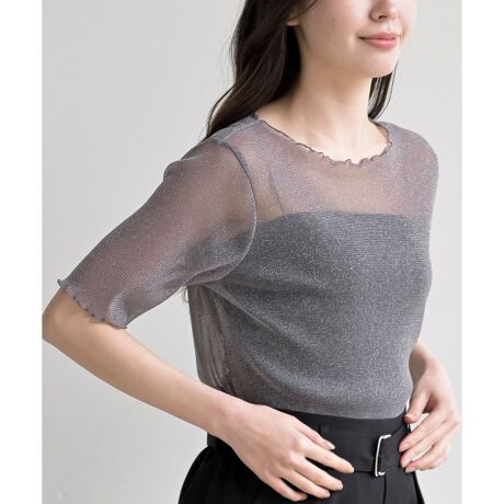 上品なきらめきがコーデを彩るラメシアーカットソー。