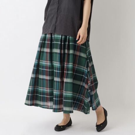 程よい薄さでこれからの季節にぴったりなチェック柄ギャザースカート。