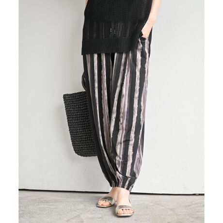 エスニックなプリントが季節感のあるコーデを演出するパンツ。