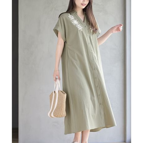 クシュっとしたコットン素材でさらっとさわやかに着られるワンピース。