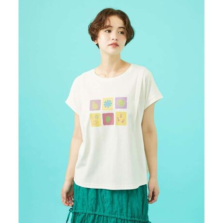 パンツ/スカート共に合わせやすいアイテムです。シンプルなのでホコモモラの柄物アイテムとよく合います。Tシャツの素材感を活かし、軽やかな素材同士で合わせた春夏らしい爽やかなコーディネートがオススメです。