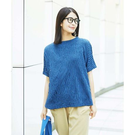 マルイウェブチャネル   /   ジャンニ・ロ・ジュディチェ   /   トップス   /   Tシャツ・カットソー   /   [洗える・日本製]麻混ギンガムワッシャージャガードカットソー