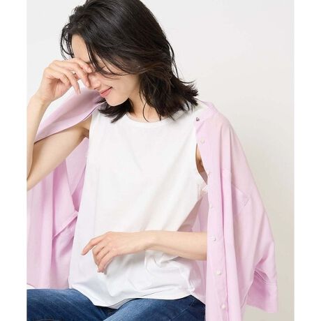 襟元のチュールが大人可愛く、季節問わず活躍するタンクトップ