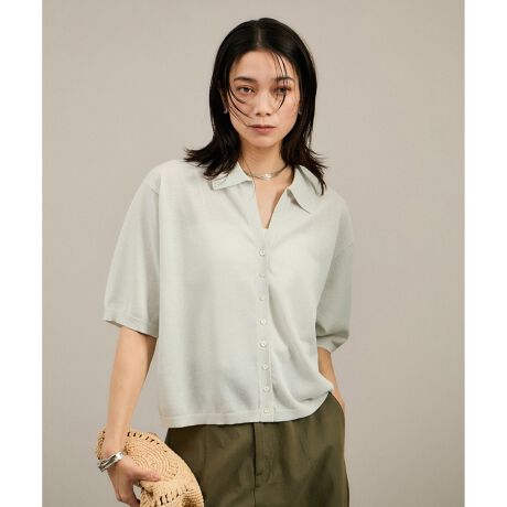 スキッパーデザインで抜け感のある衿もとが涼やかなニットカーディガンです。