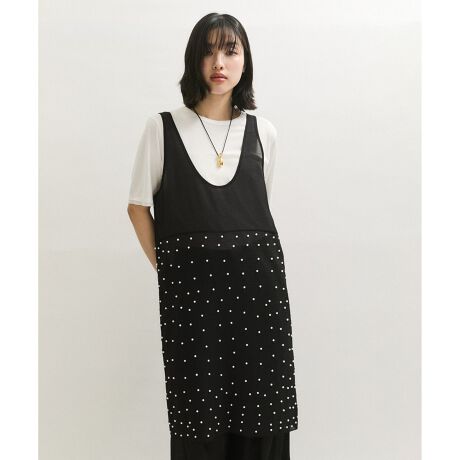 トレンドのレイヤードワンピースでビジューが華やぎなアイテム。