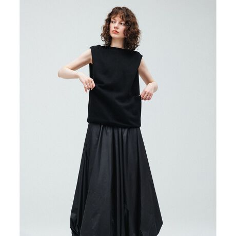 身頃生地には裏毛、スカート生地には程よいハリ感と滑らかな表面の、上品な光沢感があるポリエステル高密度タフタを使用。