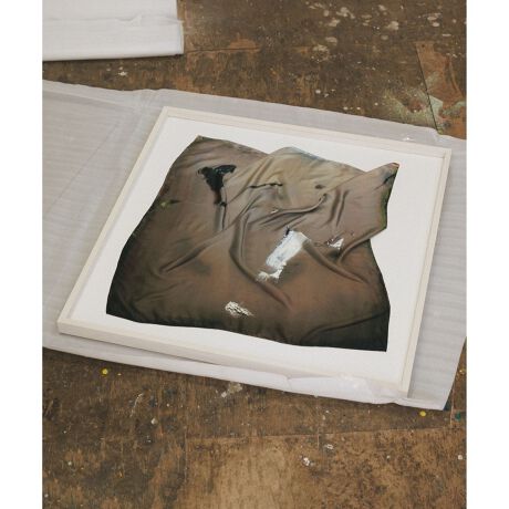 今回はスカーフとして再構築し、平野の独特な筆致が持つ空間性をそのまま表現し、
