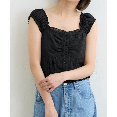 程よく肩が隠れるノースリーブ型ブラウス。