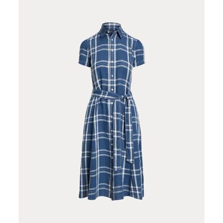 クラシックなリネンの織り地と、糸染めのチェックモチーフを組み合わせた半袖のシャツドレス。ウエストに施した取り外し可能なセルフベルトがアクセントを添えるAラインのシルエット・Aラインのシルエット / ふくらはぎ丈・スプレッドカラー / ボタン付き前立て・半袖、キャップにシャーリング・セルフベルト付き・バックヨーク / 前後にプリンセスライン / 裏地なし・モデル身長178cm、着用サイズ4※商品の色味は、光のあたり具合など諸条件により色感が多少異なって見える場合がございますので予めご了承下さい。※注意:柄の配置は、商品によって異なります。 【素材】・本体:麻 100%【生産国】フィリピン