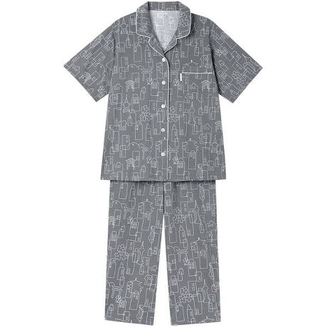 【パジャマ(5分袖8分丈パンツ)】・やわらかくなめらかな肌ざわりの綿100%の天竺素材を使用・糸を撚る回数の少ない甘撚りの糸を使っているので、やわらかな風合い・特殊な製法の糸を使用し、洗濯を繰り返してもやわらかな風合いが長持ちしやすく、毛玉になりにくい・大阪・京都それぞれの都市の観光名所を連想させるモチーフをちりばめた手描き風のグラフィティ調プリントBU・IVカラー:OSAKA柄GY・PIカラー:KYOTO柄【サイズ詳細】M:身幅53.0cm 身丈67.5cm 着丈65.0cm 肩幅42.0cm 袖丈23.0cm ボトム脇丈82.0cm 裾まわり46.0cm ウエスト58.0cm ヒップ104.0cm 股下(レングス)52.0cmL:身幅57.0cm 身丈68.0cm 着丈65.0cm 肩幅44.0cm 袖丈23.0cm ボトム脇丈82.5cm 裾まわり48.0cm ウエスト63.0cm ヒップ108.0cm 股下(レングス)52.0cm※出来上がり寸法を表示しております