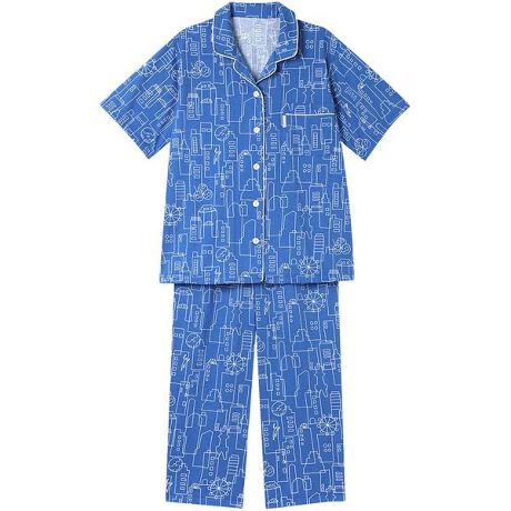 【パジャマ(5分袖8分丈パンツ)】・やわらかくなめらかな肌ざわりの綿100%の天竺素材を使用・糸を撚る回数の少ない甘撚りの糸を使っているので、やわらかな風合い・特殊な製法の糸を使用し、洗濯を繰り返してもやわらかな風合いが長持ちしやすく、毛玉になりにくい・大阪・京都それぞれの都市の観光名所を連想させるモチーフをちりばめた手描き風のグラフィティ調プリントBU・IVカラー:OSAKA柄GY・PIカラー:KYOTO柄【サイズ詳細】M:身幅53.0cm 身丈67.5cm 着丈65.0cm 肩幅42.0cm 袖丈23.0cm ボトム脇丈82.0cm 裾まわり46.0cm ウエスト58.0cm ヒップ104.0cm 股下(レングス)52.0cmL:身幅57.0cm 身丈68.0cm 着丈65.0cm 肩幅44.0cm 袖丈23.0cm ボトム脇丈82.5cm 裾まわり48.0cm ウエスト63.0cm ヒップ108.0cm 股下(レングス)52.0cm※出来上がり寸法を表示しております