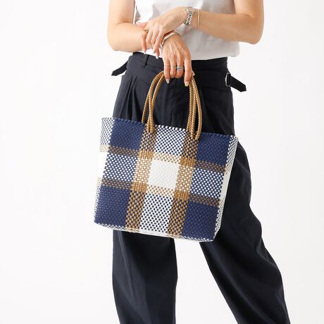 メルカドバッグは、メキシコに古くから伝わる技法で編まれた、再生プラスティック素材のかごバッグです。