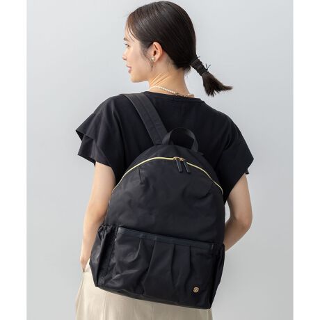 ■デザイン・素材・撥水生地を使用したバックパック。・A4サイズも収納可能なサイズ感でデイリー使いにピッタリ。1泊旅行にもおすすめ。・組曲オリジナルロゴエンブレム付き。・ショルダーの肩当ては痛くなりにくいスポンジ入り幅広タイプで、ベルトをスライドさせることでサイズ調整可。(外ポケット〉・前側:ファスナー付きポケット×1⇒小物を安全に収納可能。・背中側:ファスナー付きポケット×1⇒リュックを背負ったまま開閉できる縦向きファスナー。内側には繋がっていない独立ポケット。〈内ポケット〉・前側:オープン仕分けポケット×1・背中側:スポンジ素材オープンポケット×1⇒PCやタブレットの持ち運びに便利。・両サイド:深筒型オープンポケット×2⇒ペットボトルや折り畳み傘などを収納できる便利な形状。