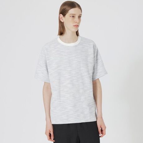 表面をブークレ糸にすることでシンプルなTシャツを大人上品にアップグレードしました。