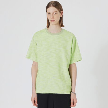 表面をブークレ糸にすることでシンプルなTシャツを大人上品にアップグレードしました。