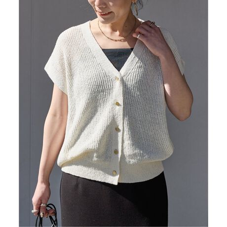 リネンコットン混の凹凸のある糸を使用したアゼ編みのニットベスト。