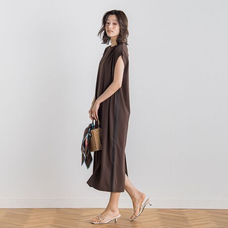 サイドのステッチラインがワンポイントのフレンチスリーブワンピース。