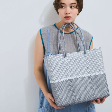 リサイクルプラスティックを使用し、手編みで丁寧に編み上げたメルカドバッグです。
