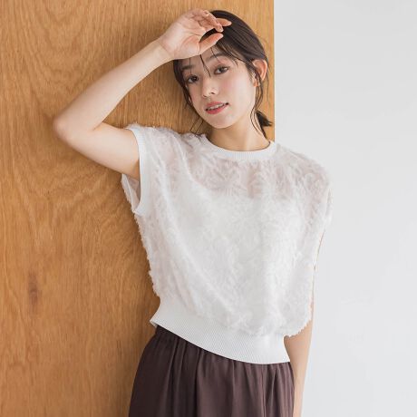 シアーな素材にヘアリーなフラワージャガードの表情が