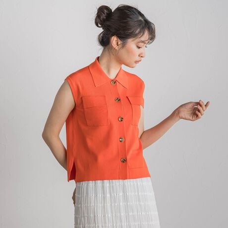 ポロ襟ノースリーブニット≪手洗い可能≫