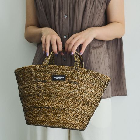 リメイクミックスかごバッグはリサイクル資材をブレンドした天然素材のハンドバッグです。
