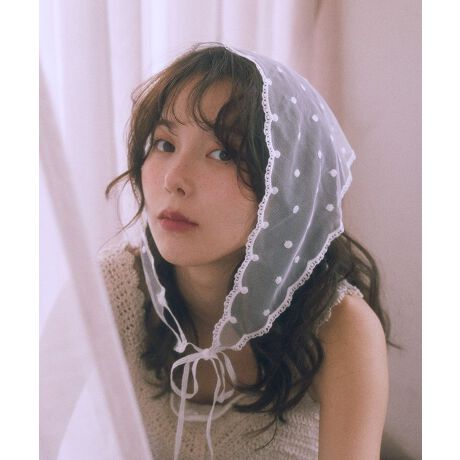 繊細なドットレース生地がフェミニンなバブーシュカ。しっかりと長さがあるので、アレンジ次第でアップヘア・ダウンヘアのどちらでもお使いいただけます。軽量でストレスフリーな付け心地なのも魅力的。いつもの着こなしに取り入れるだけでトレンド感のあるスタイリングが完成するおすすめのアイテムです。※モデル着用画像は、光の当たり具合で色味が違って見える場合がございます。※お使いのモニター環境によって商品の色味が違って見える場合がございます。