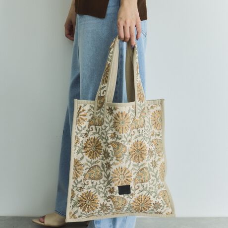 木版(ブロックプリント)カラーと柄にこだわったフラットタイプのトートバッグ。